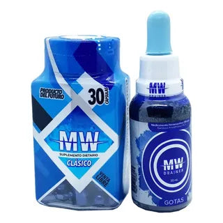 ¿Quieres perder peso de forma efectiva, segura y sin someterte a dietas estrictas o rutinas agotadoras? El Combo MW (Quemador + Drenador) es la fórmula natural perfecta para lograrlo. Este potente dúo actúa desde adentro: quema grasa, elimina toxinas, reduce líquidos retenidos y combate la celulitis, potenciando tu metabolismo hasta en un 200% más que usando un solo producto.
